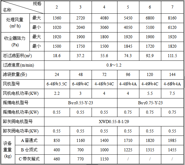 規(guī)格:該單機(jī)收塵器有2、3、4、5、6、7六個(gè)規(guī)格。