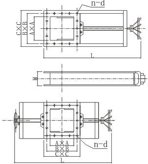 該閘門主要由框架、絲桿螺母、手輪、閘板組成,手輪(鏈輪)轉(zhuǎn)動,絲桿帶動絲桿螺母和閘板作水平方向的往復(fù)運(yùn)動,達(dá)到閘門的啟閉目的。