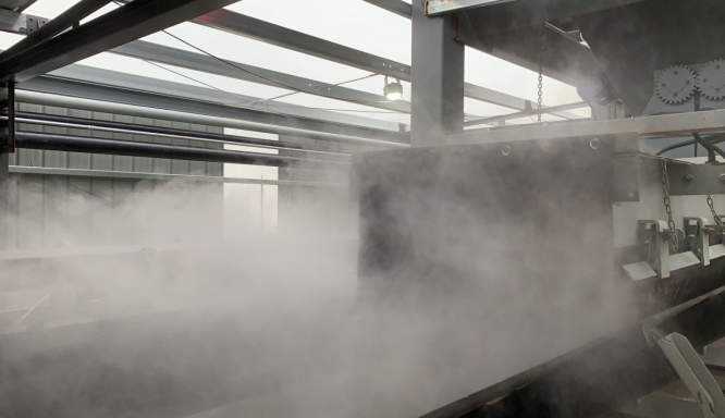江蘇利淮鋼鐵有限公司燒結(jié)原料廠(chǎng)碼頭皮帶機(jī)受料點(diǎn)、燒結(jié)礦外備皮帶、返礦外備皮帶、1#燒結(jié)燒結(jié)礦進(jìn)料機(jī)口、粉焦焦丁倉(cāng)放料口、二燒粉焦煤棚、篩焦樓汽車(chē)放料口等區(qū)域除塵、抑塵設(shè)施選用“博牌微米級(jí)干霧抑塵系統(tǒng)進(jìn)行抑塵治理。新增干霧抑塵系統(tǒng)4套,新增60m遠(yuǎn)程射霧器1,干霧抑塵利舊改造6套。